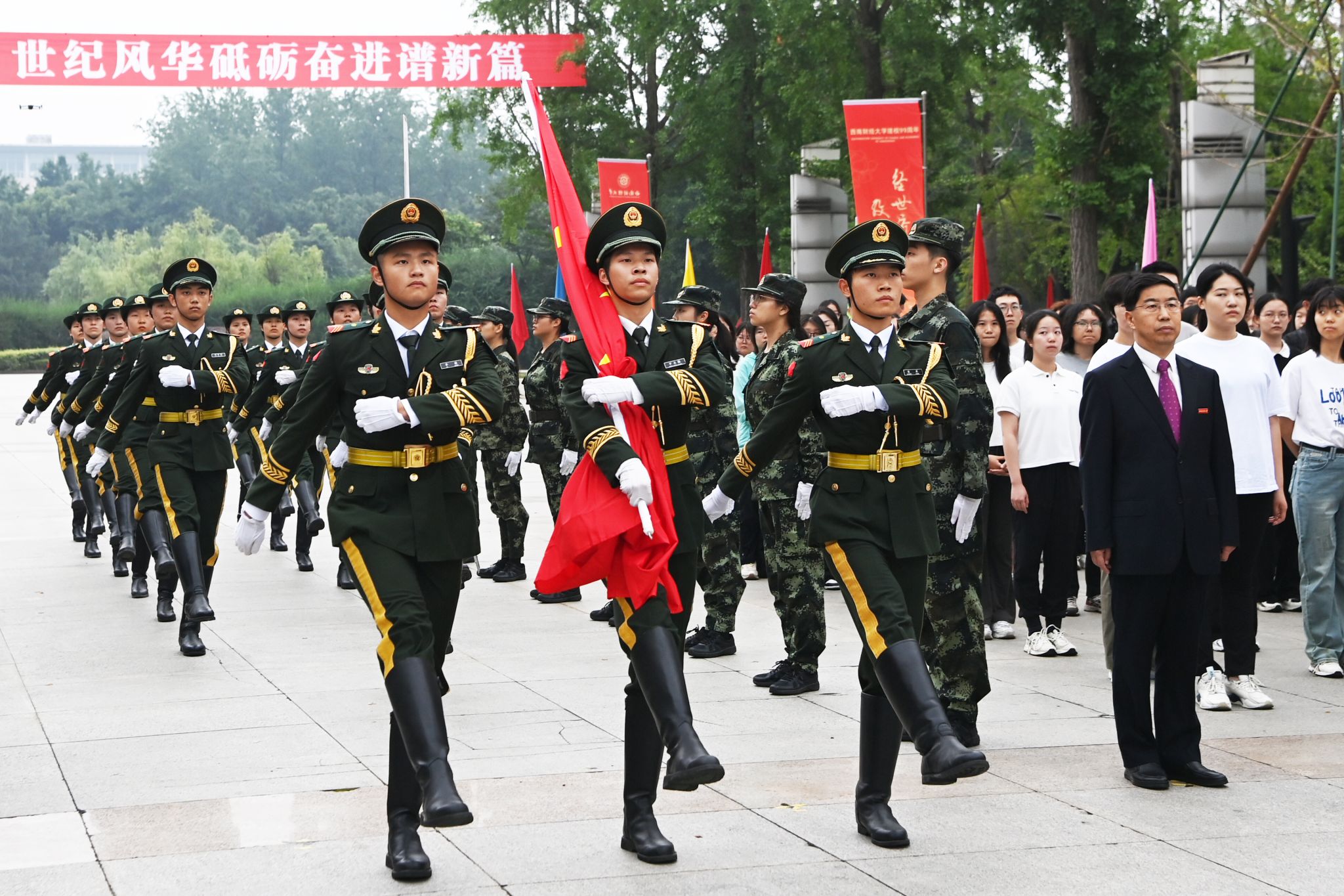 校領(lǐng)導(dǎo)發(fā)表熱情洋溢的講話。他們深情回顧了學(xué)校99年來從黃浦江畔到浣花溪邊,始終與國家共命運(yùn),始終堅(jiān)持黨的全面領(lǐng)導(dǎo),風(fēng)雨兼程繪就團(tuán)結(jié)奮斗、搶抓機(jī)遇、創(chuàng)新發(fā)展、追求卓越壯麗畫卷的崢嶸歷程。他們指出,明年此刻學(xué)校將迎來建校100周年。獻(xiàn)禮百年西財(cái),要不忘立德樹人初心,牢記為黨育人、為國育才使命,努力培養(yǎng)更多讓黨放心、愛國奉獻(xiàn)、擔(dān)當(dāng)民族復(fù)興重任的時(shí)代新人。要以更大擔(dān)當(dāng)服務(wù)國家戰(zhàn)略需求,堅(jiān)持教育、科技、人才一體推進(jìn),不斷增強(qiáng)辦好人民滿意高等財(cái)經(jīng)教育的責(zé)任感、使命感、緊迫感。要全面推進(jìn)學(xué)校“新財(cái)經(jīng)”戰(zhàn)略升級,在進(jìn)一步全面深化改革中推動高質(zhì)量發(fā)展,加快建設(shè)財(cái)經(jīng)特色鮮明的世界一流大學(xué),為以中國式現(xiàn)代化全面推進(jìn)強(qiáng)國建設(shè)、民族復(fù)興偉業(yè)作出新的更大貢獻(xiàn)。