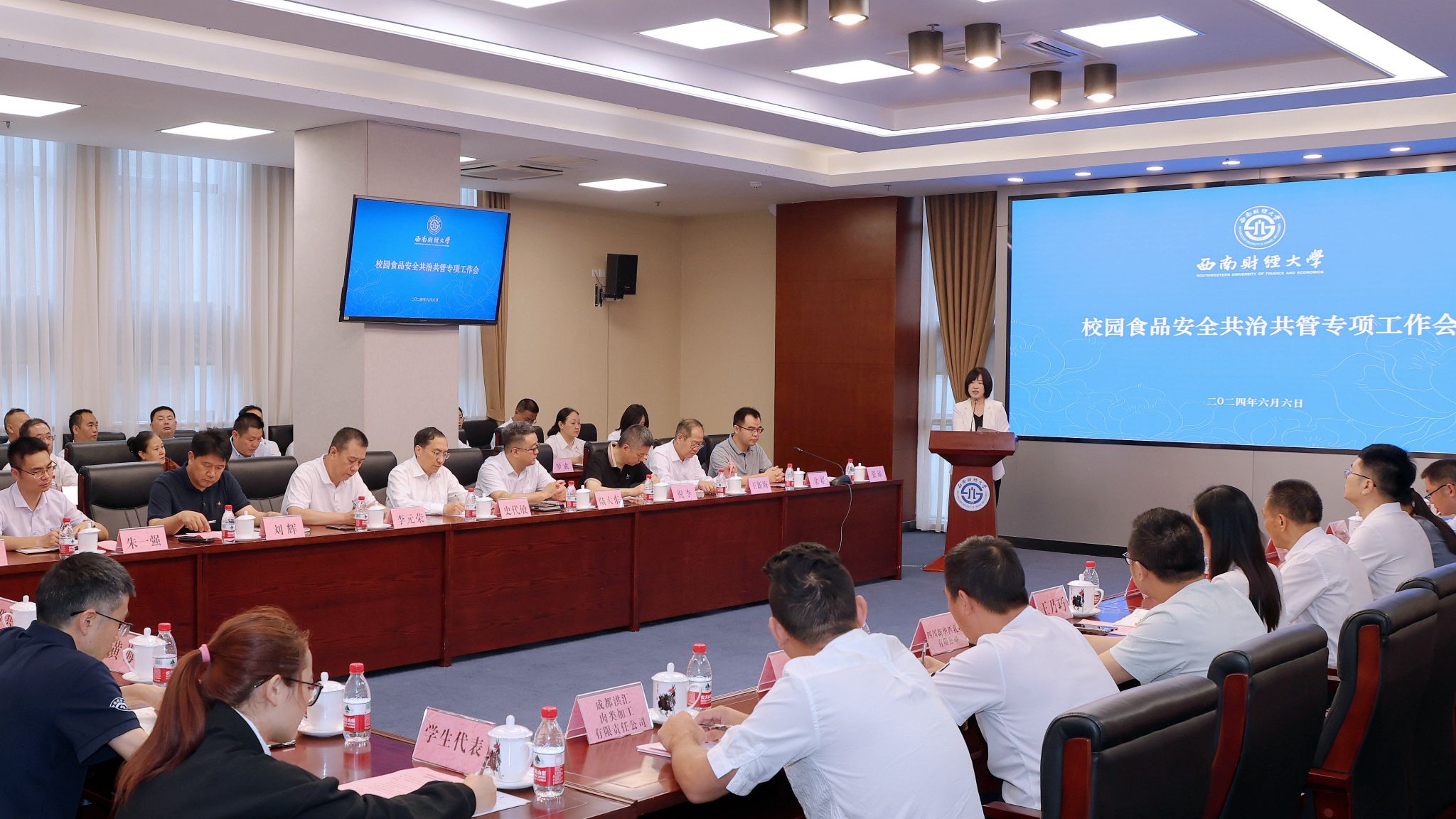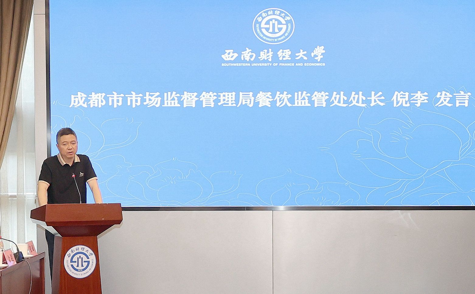 6月6日,學校食品安全共治共管專項工作會在弘遠樓109會議室召開。黨委常委、副校長史代敏,溫江區人民政府副區長陸大東出席會議并致辭,四川省市場監督管理局一級調研員李元榮,成都市市場監督管理局餐飲監管處處長倪李,溫江區市場監管局黨組書記劉輝出席會議。轄區市場監督管理部門、學校紀檢監察辦公室相關負責人、后勤服務總公司負責人、師生代表、全體大宗物資供應商和校內食品經營戶參加會議。
