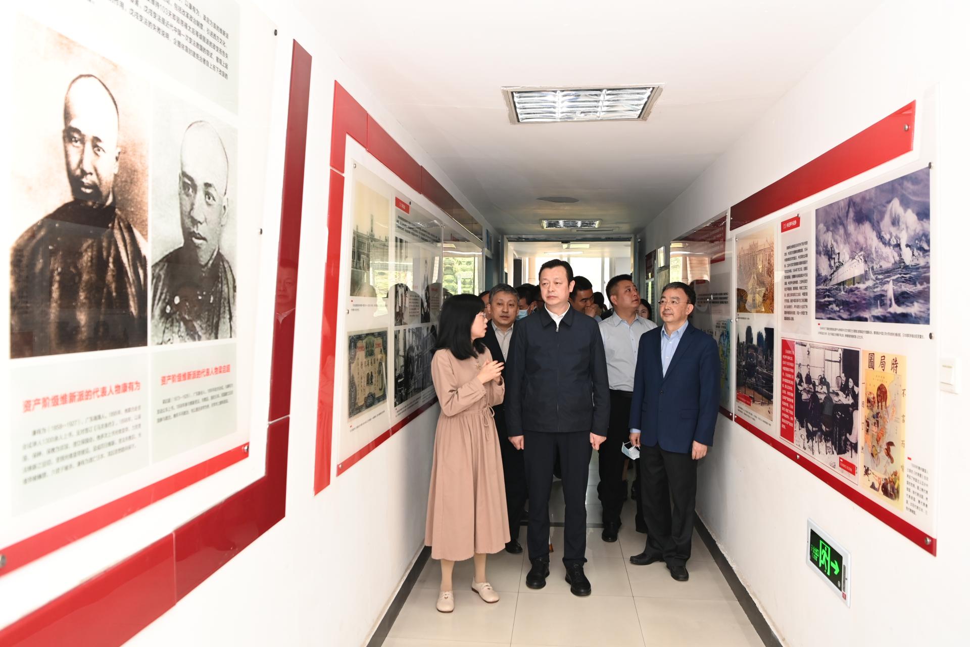 調研期間,高中偉一行還參觀考察了馬克思主義學院“紅色文化走廊”,體驗了全國思政課虛擬仿真體驗教學中心項目。