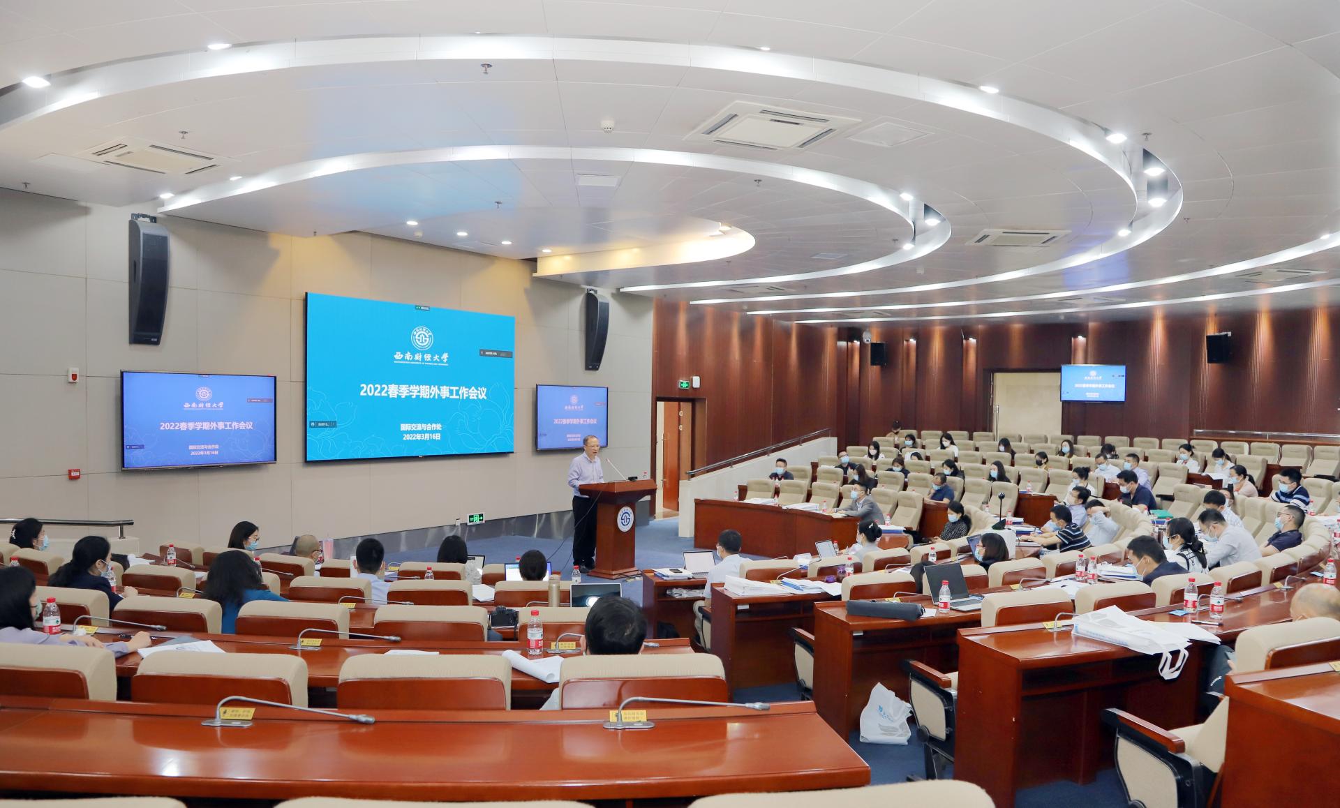 3月16日下午,學校2022年外事工作會議在弘遠樓101會議室召開,黨委常委、副校長李永強,國際交流與合作處(港澳臺事務辦公室)負責人,各學院(中心)分管外事工作負責人和外事秘書參加會議。