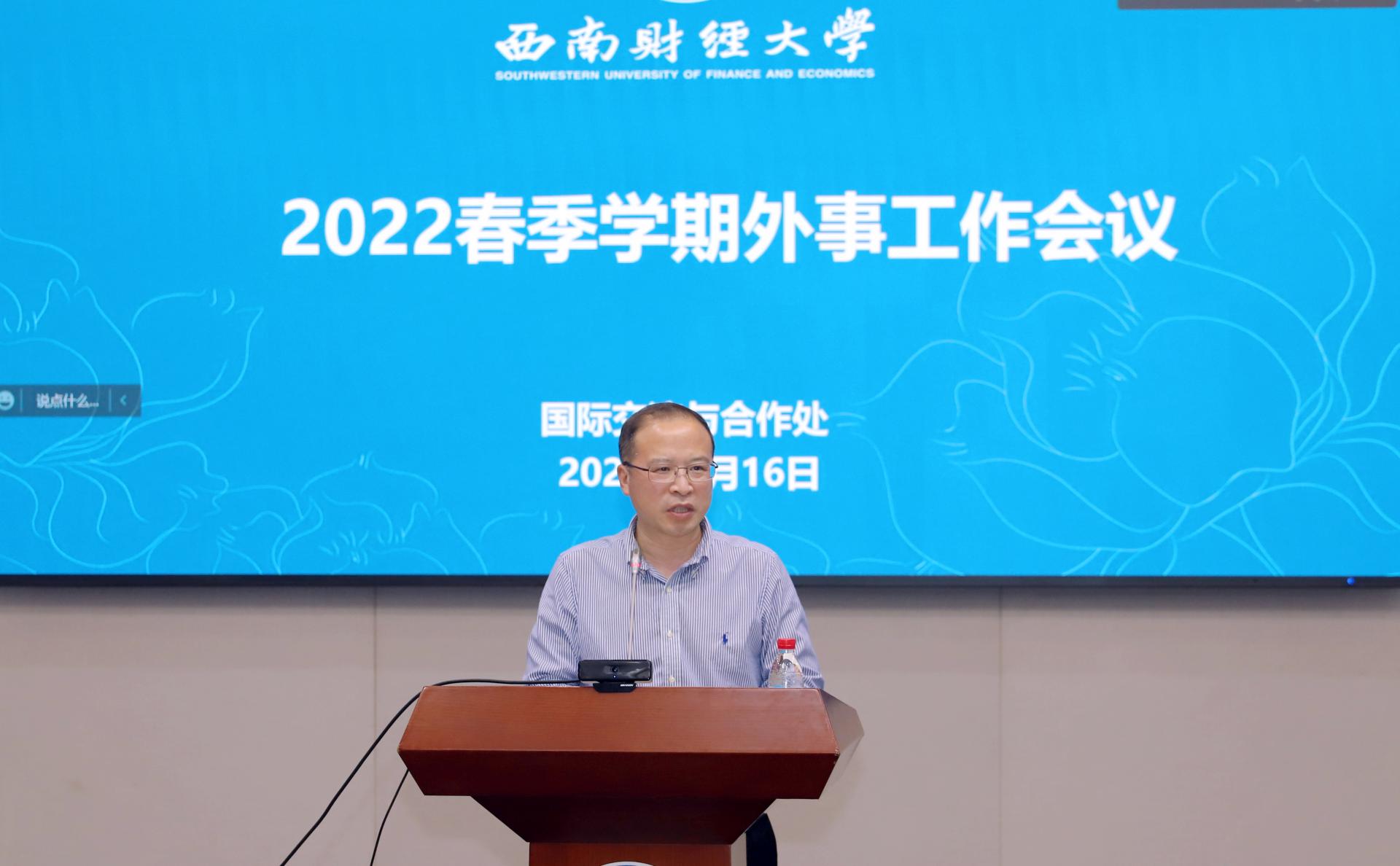 李永強指出,目前學校處于“十四五”規劃、第二輪“雙一流”建設以及百年校慶的重要時期。對照新時代教育對外開放新形勢、新要求,一要強化問題導向,對照“雙一流”建設要求和財經特色鮮明的世界一流大學戰略目標找差距、補短板、強弱項;二要強化戰略導向,推動外事工作與學科建設協同發展,聚焦金融、科技、西部等重點領域,做好發展型、賦能型外事工作;三是強化風險意識,堅持黨對外事工作的集中統一領導,加強意識形態陣地建設,筑牢涉外疫情安全防線;四是強化績效導向,以項目化、清單化、責任化推動戰略目標落實落細,抓好關鍵項目、環節、人員,實現國際交流與合作水平層次躍升。