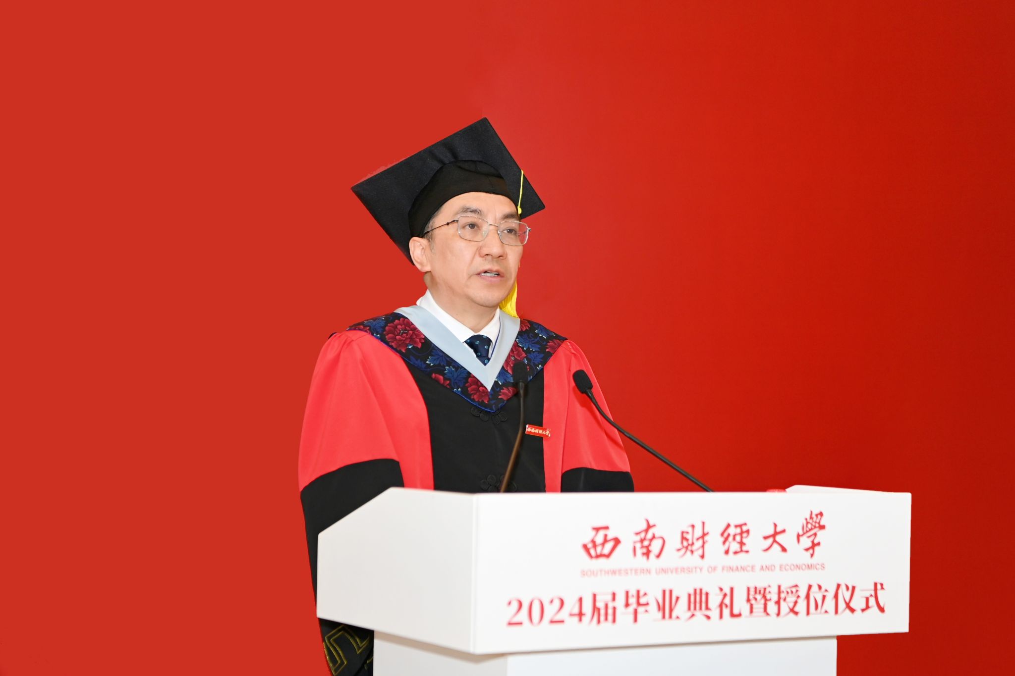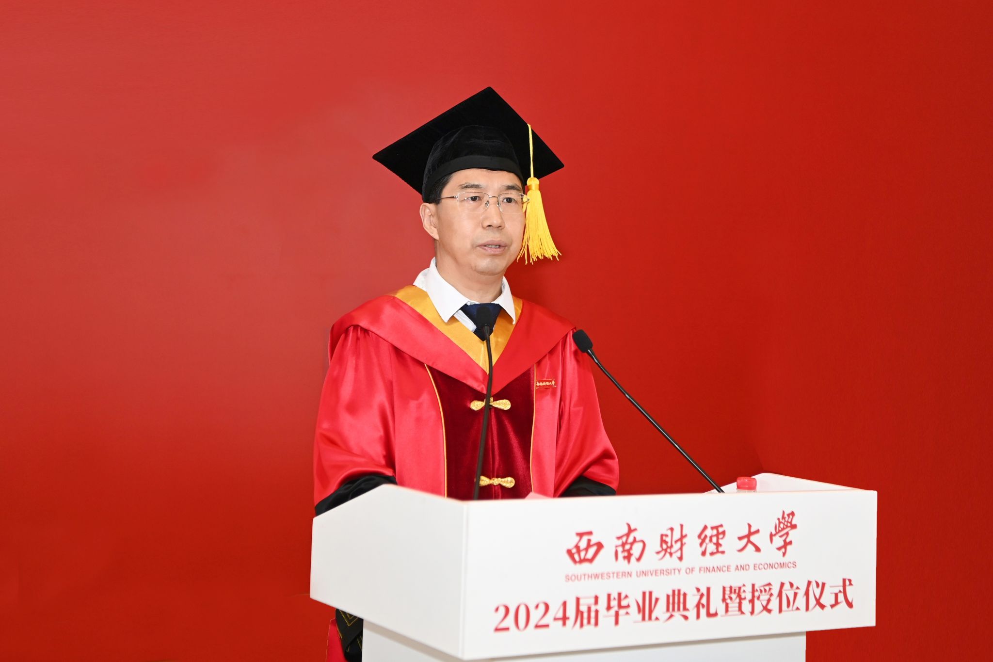 畢業(yè)生代表王怡焯發(fā)言,與在場(chǎng)師生共同回顧追夢(mèng)奮斗的西財(cái)時(shí)光,表達(dá)對(duì)母校的熱愛、對(duì)父母的感恩、對(duì)師友的不舍,表示將繼續(xù)踐行“經(jīng)世濟(jì)民、孜孜以求”西財(cái)精神,挺膺擔(dān)當(dāng)、砥礪奮斗,力爭(zhēng)成為具有社會(huì)責(zé)任感、創(chuàng)新精神、國(guó)際視野的財(cái)經(jīng)領(lǐng)域卓越人才,書寫更加輝煌的青春篇章。