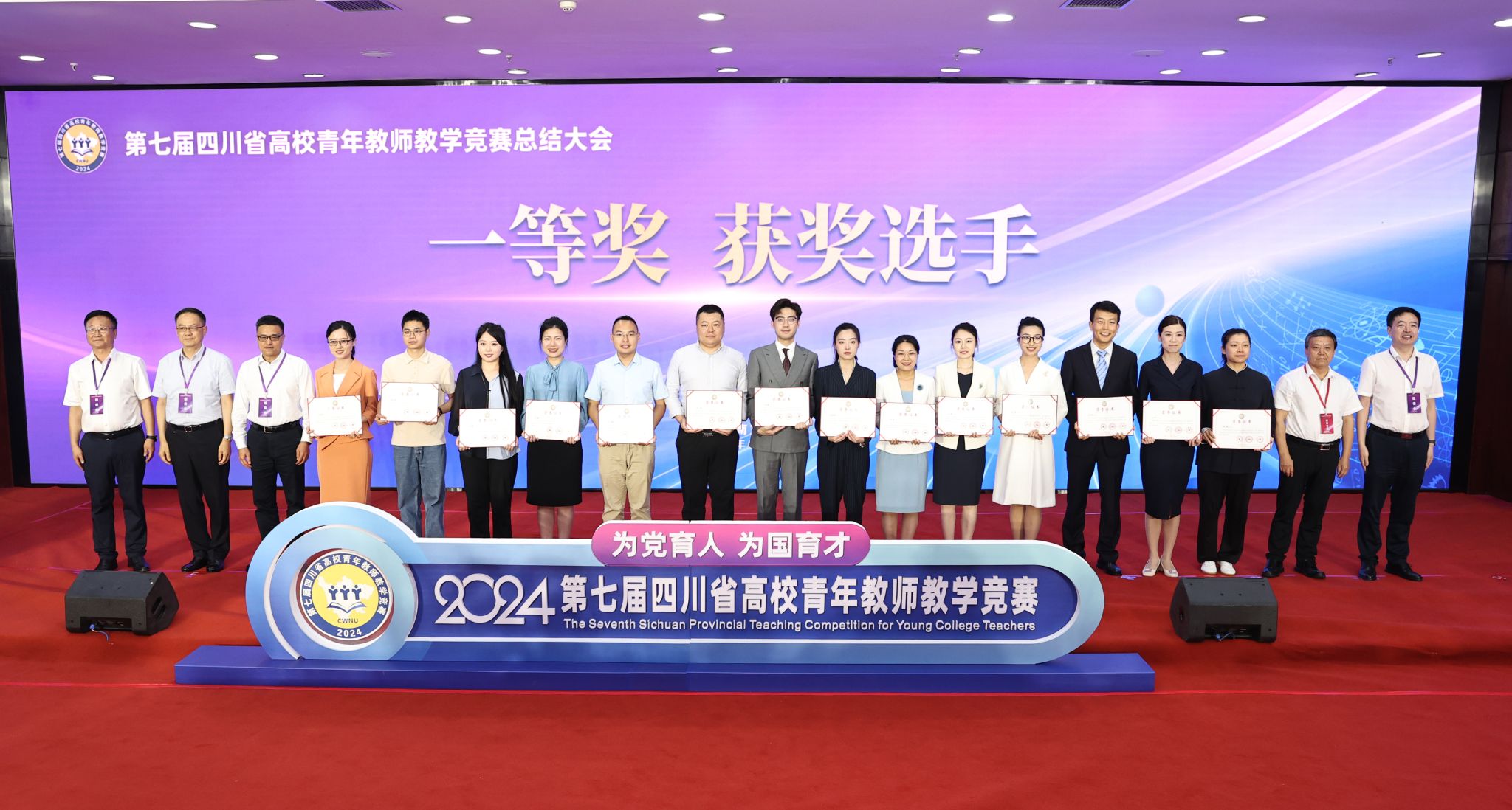 在28日下午舉行的決賽總結(jié)表彰大會(huì)上,四川省總工會(huì)黨組成員、副主席彭闖和四川省教育廳二級(jí)巡視員楊建國(guó)等領(lǐng)導(dǎo)為獲獎(jiǎng)教師頒獎(jiǎng),宋婧琳代表參賽選手發(fā)言。她表示,將秉持以學(xué)生為中心、跨學(xué)科融合、以科研推動(dòng)教學(xué)的教育理念,不忘初心、共同攜手為熱愛(ài)的高等教育事業(yè)挺膺擔(dān)當(dāng)。