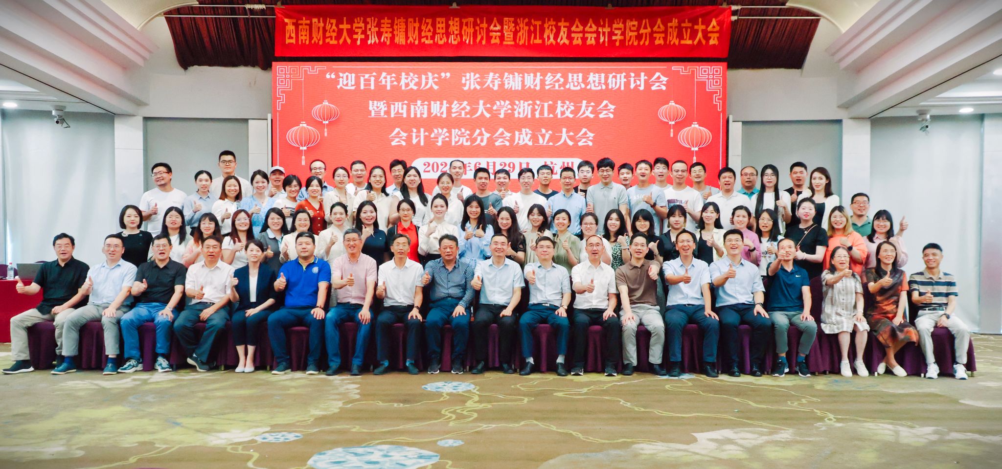 百歲芳華待灼,光華弦歌不輟。6月29日,由西南財經大學浙江校友會舉辦的張壽鏞財經思想研討會在杭州順利召開。學校黨委常委、副校長馬永強,科研處、校友工作辦公室、會計學院相關負責人,北京、天津、陜西、成都等兄弟校友會代表,以及在浙西財校友100余人參加會議。