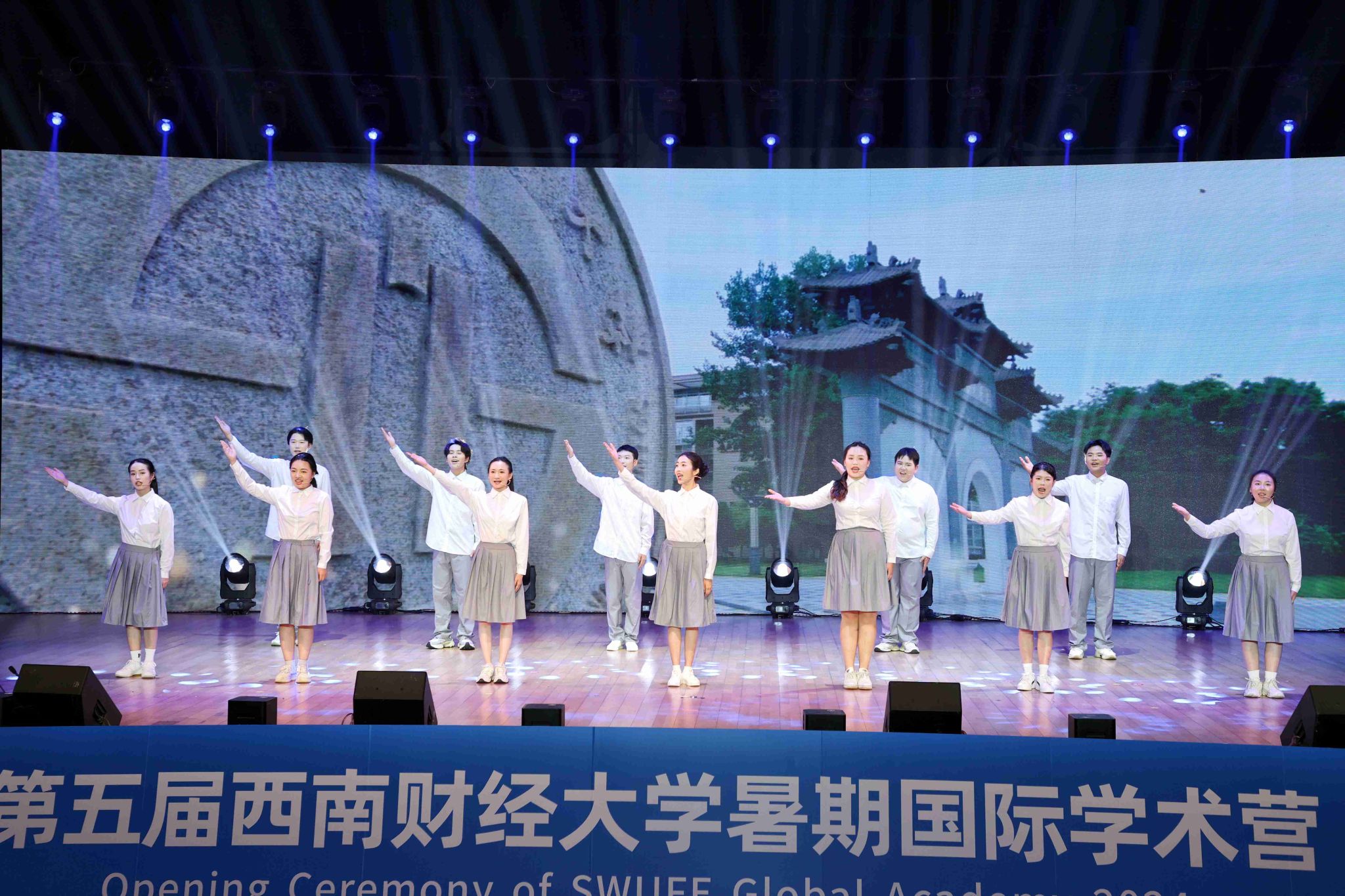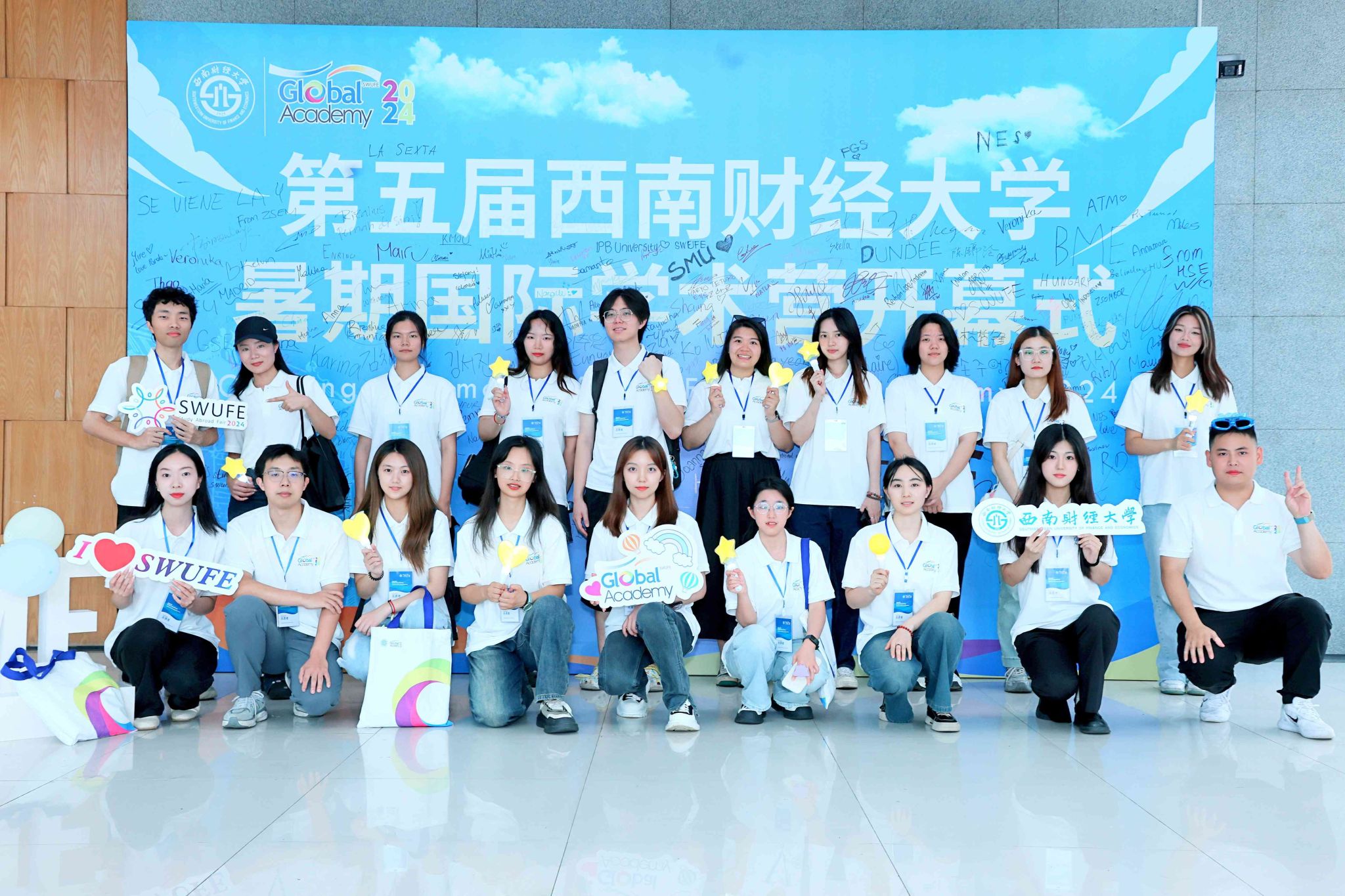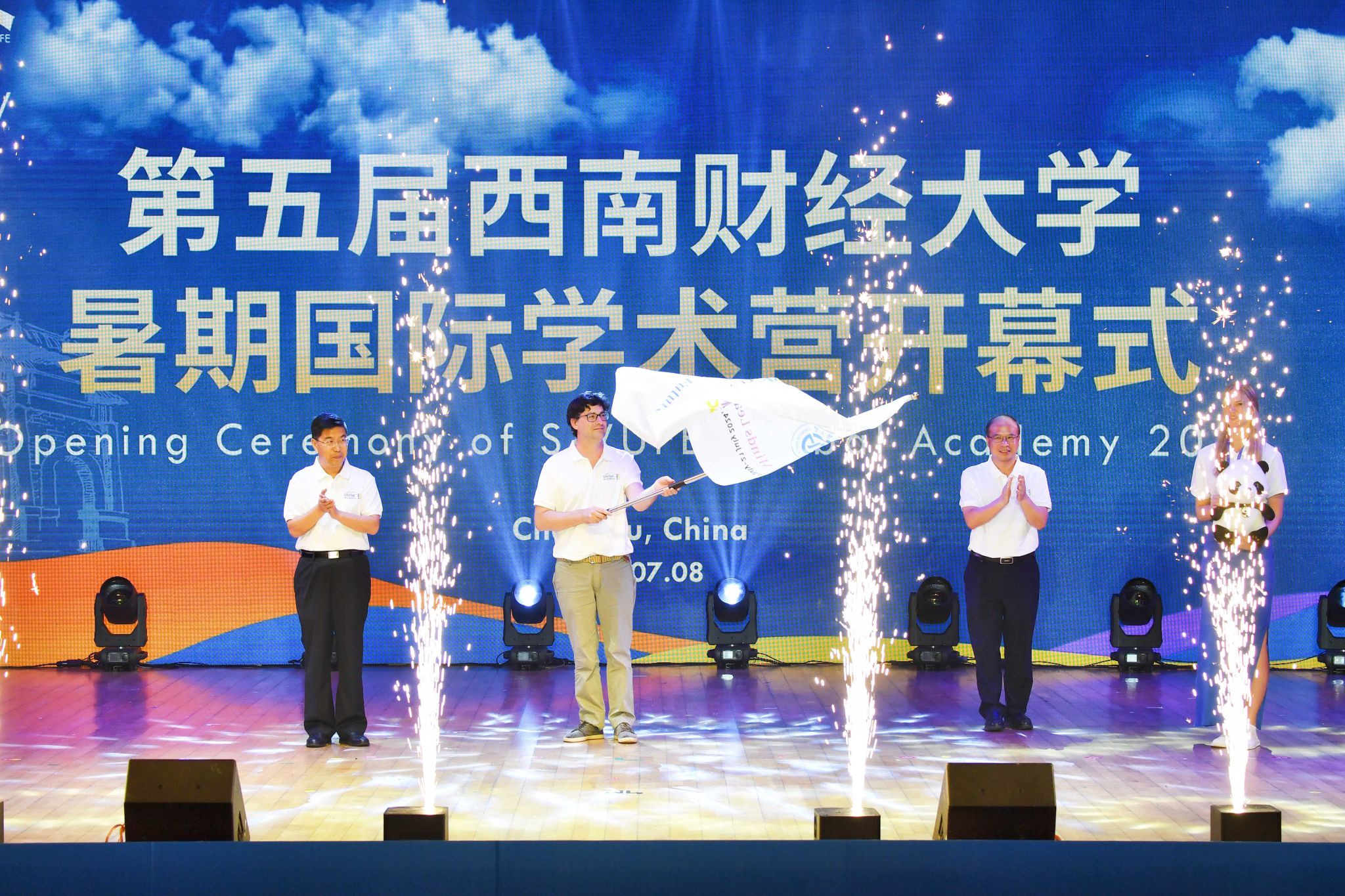 7月8日,西南財經大學第五屆暑期國際學術營(SWUFE Global Academy)在柳林校區學生活動中心盛大開幕。來自44個國家和地區的43所高校279位國際師生與西財師生共同參加開幕式。黨委書記趙建軍,黨委副書記、校長李永強,黨委副書記明海峰,黨委常委、副校長李志生共同為第五屆暑期國際學術營揭幕,學校有關單位負責人出席開幕儀式。