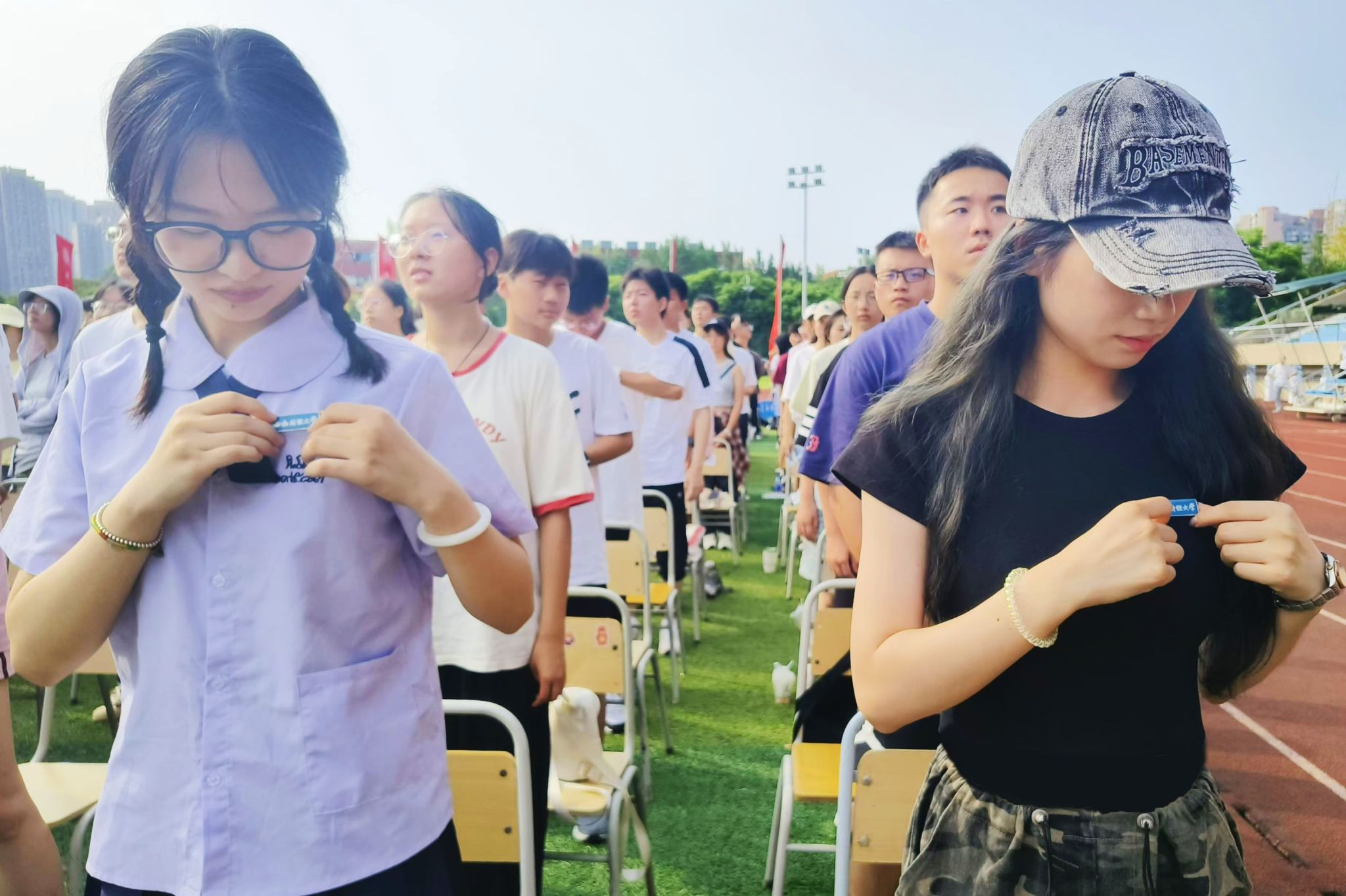 儀式中,學校領導為新生代表佩戴學校名牌,全體新生現場集體佩戴學校名牌并莊嚴宣誓。胸前閃耀的“西南財經大學”,是青春之焰、理想之光,激勵著每一位新西財人朝著成長之路、逐夢之旅前行。
