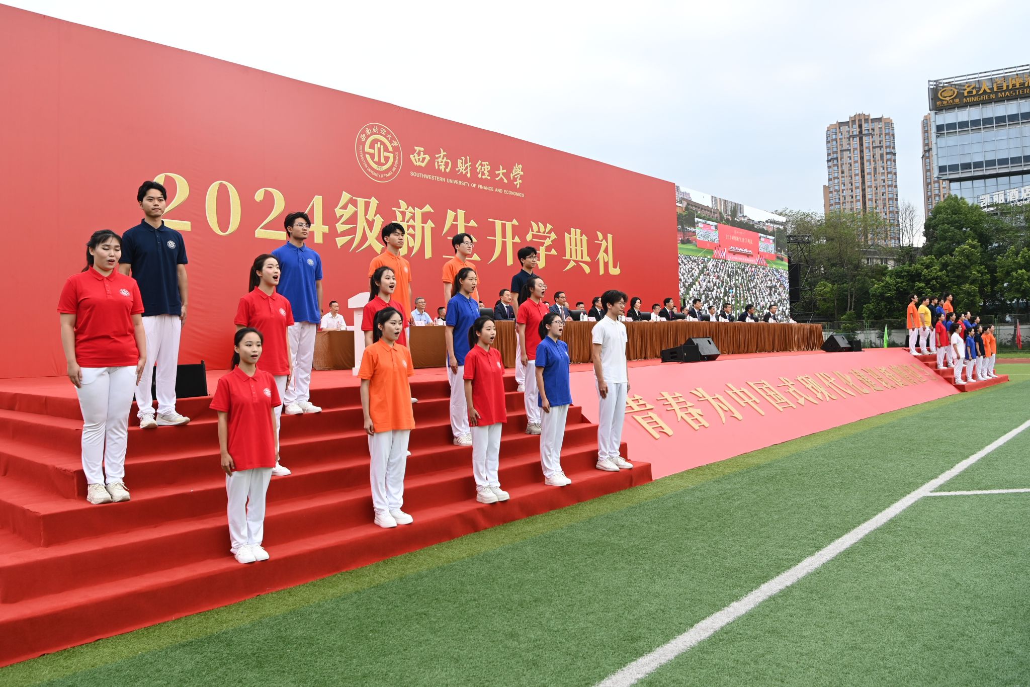 “經世濟民共擔當,孜孜以求興國邦……”典禮在全體師生齊聲共唱《西南財經大學校歌》中落下帷幕。