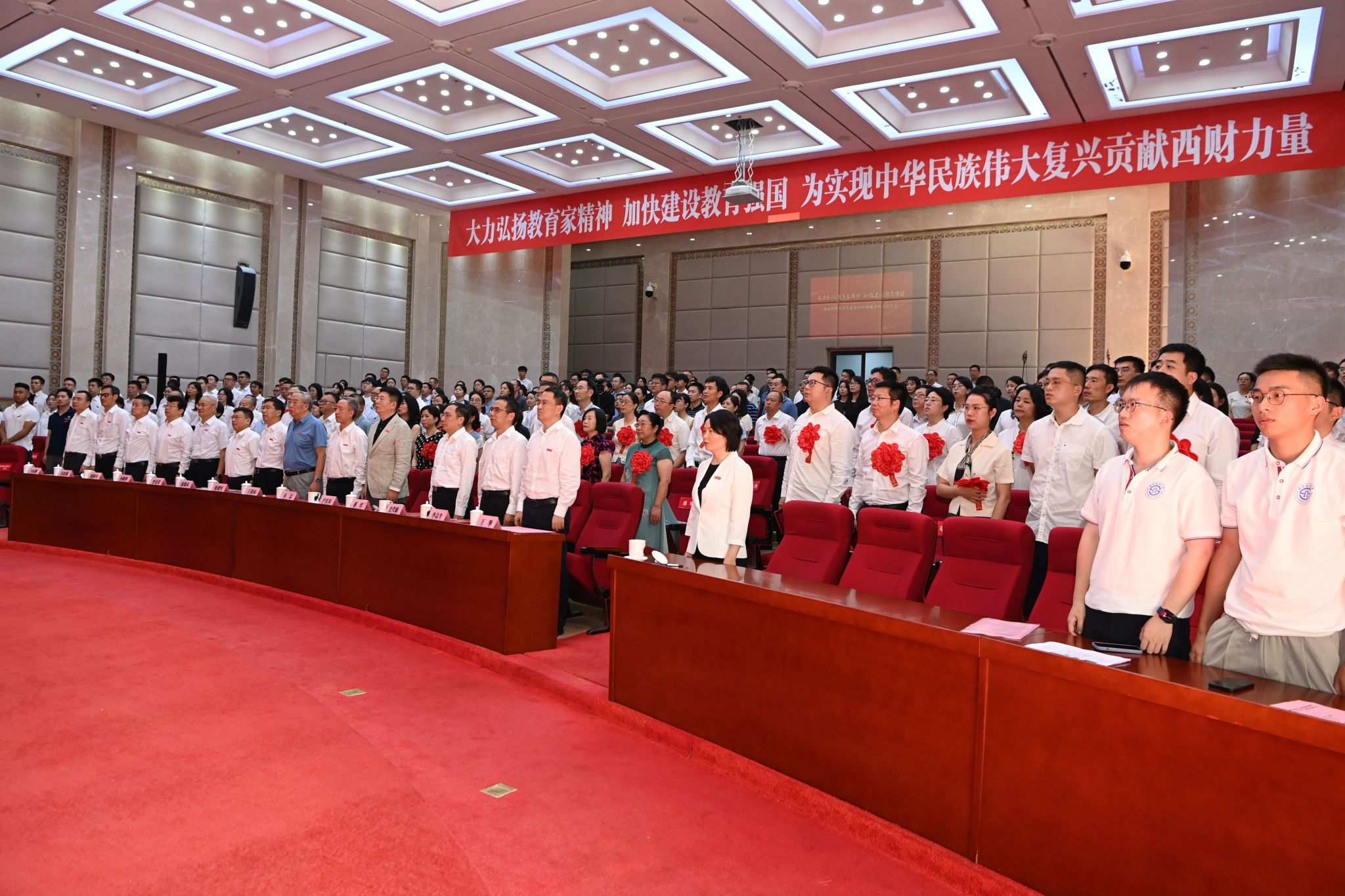 趙建軍指出,長(zhǎng)期以來(lái),學(xué)校黨委把隆重慶祝教師節(jié)作為弘揚(yáng)尊師重教傳統(tǒng)、加強(qiáng)教師隊(duì)伍建設(shè)、增強(qiáng)教師職業(yè)榮譽(yù)感的重要載體,成為學(xué)校思政工作體系和名師大家文化的重要組成部分。廣大西財(cái)教師牢記為黨育人、為國(guó)育才使命,以赤誠(chéng)之心、奉獻(xiàn)之心、仁愛(ài)之心投身教育事業(yè),用實(shí)際行動(dòng)培養(yǎng)了一批批優(yōu)秀人才,詮釋出教育家精神的時(shí)代底色,彰顯出“大國(guó)良師”的西財(cái)風(fēng)采。過(guò)去一年,全體教師學(xué)思踐悟“鑄忠誠(chéng)”、躬耕教壇“育英才”、頂天立地“治學(xué)問(wèn)”、經(jīng)世濟(jì)民“立新功”,在思想引領(lǐng)、教育教學(xué)、科學(xué)研究、社會(huì)服務(wù)等領(lǐng)域取得豐碩成果。