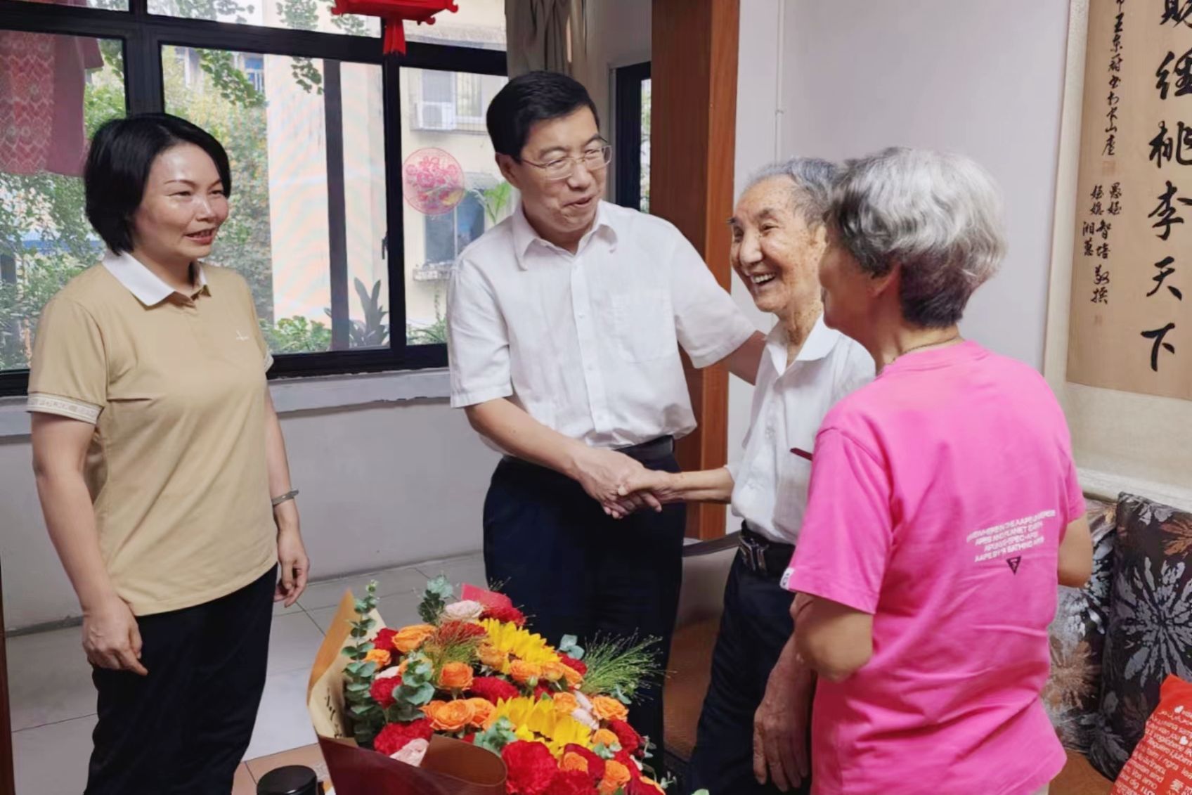 趙建軍一行來到稅顯光等老同志家中,與他們親切交談,仔細詢問了解他們的身體生活情況,并向老同志介紹近年來學校事業發展取得的新成效、新進步,對老同志為國家和學校事業發展作出的貢獻表示衷心感謝,祝愿他們生活愉快、身體健康。