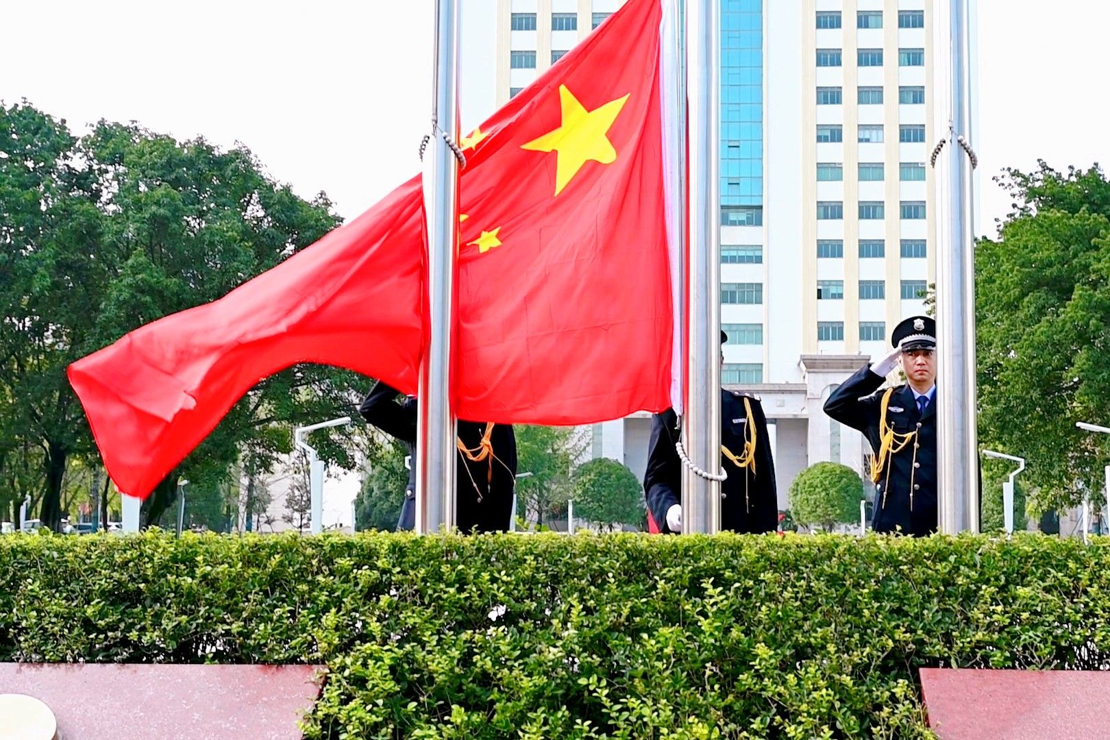 10月1日清晨,學校舉行莊嚴升國旗儀式。師生代表滿懷赤誠深情,齊聚光華、柳林兩校區北大門廣場,共同迎接五星紅旗在秋日的金暉中冉冉升起,為祖國母親獻上最誠摯的生日祝福。黨委副書記明海峰,黨委常委、副校長王擎,兩校區師生代表,相關職能部門負責人參加升國旗儀式。