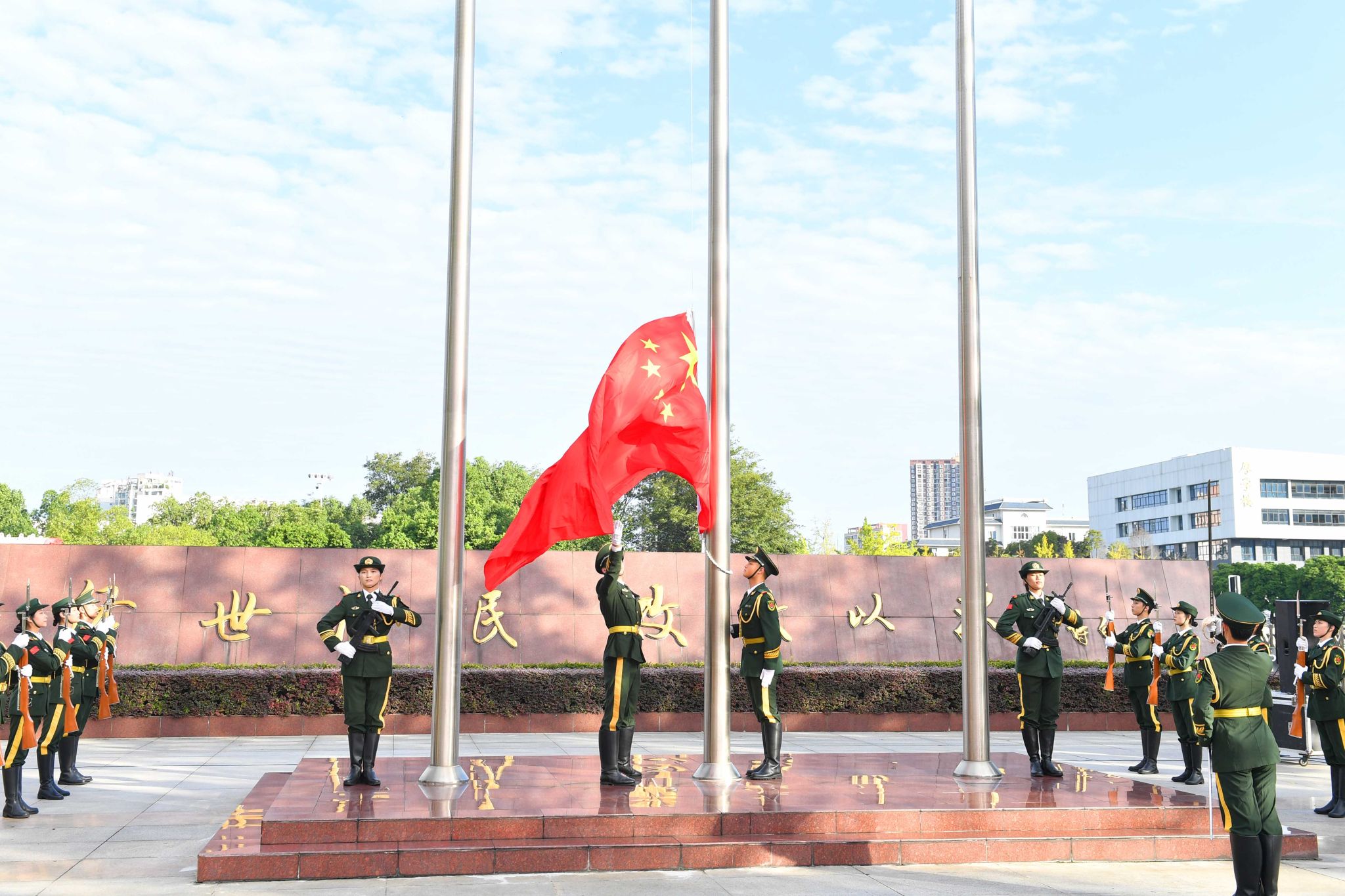 伴隨著雄壯激昂的《義勇軍進行曲》,五星紅旗冉冉升起,那一抹飄揚在長空里的中國紅,點燃每一個西財人的愛國心、報國情、強國志。師生們目光如炬,共同凝視著那面代表著國家尊嚴與榮耀的五星紅旗,共同祝愿祖國繁榮昌盛,人民幸福安康!