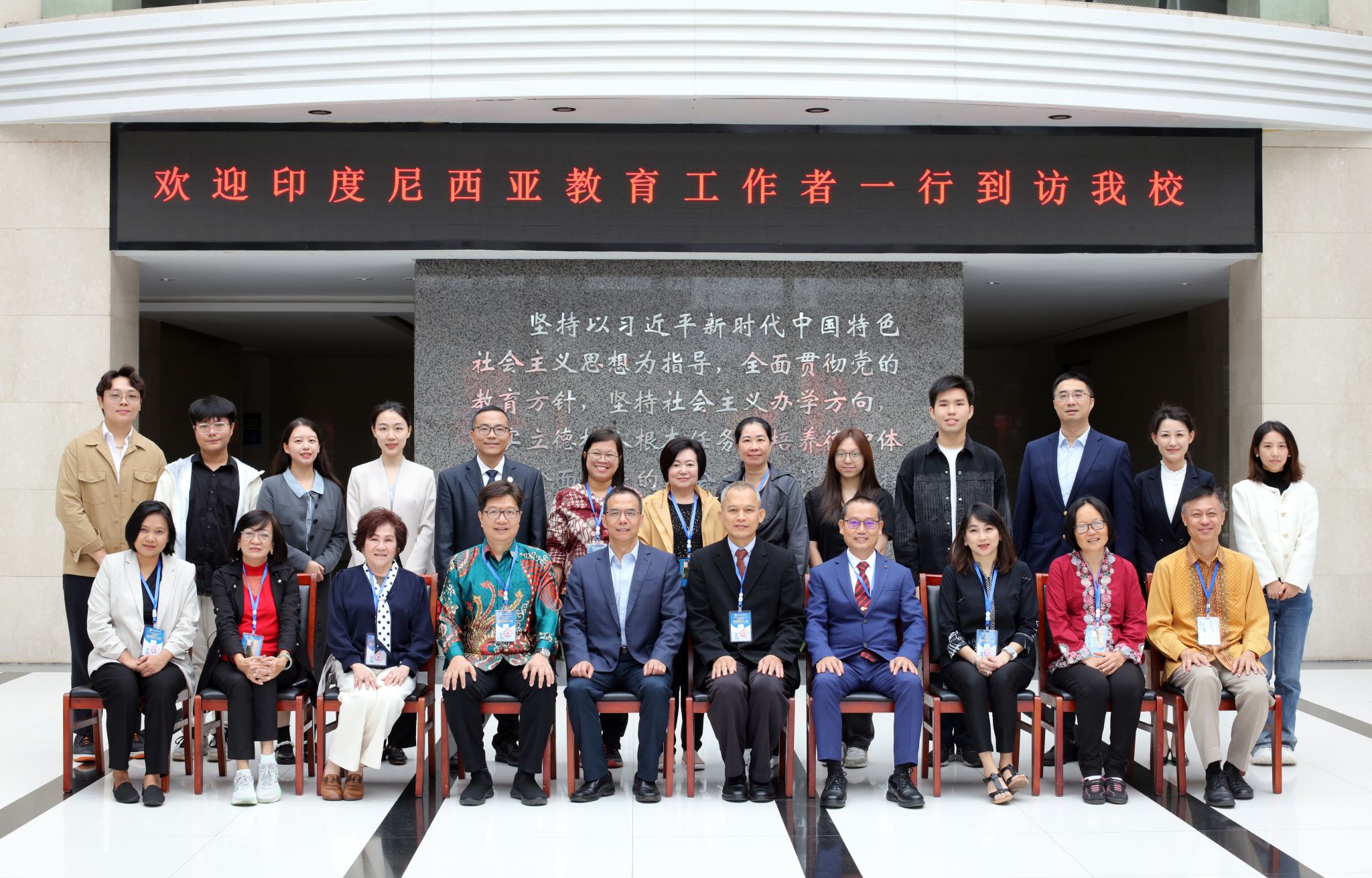 李志生代表學校向印度尼西亞教育工作者訪華團一行表示熱烈歡迎,介紹了學校的歷史沿革、辦學特色、學科建設以及國際中文教育發展等方面情況。他表示,學校秉承“開放包容、求是創新”的理念,希望通過“漢語橋”這座溝通世界的語言之橋、文化之橋,架起“語言交流、文化互鑒、心靈溝通”之橋,助力深化中印尼兩國教育交流與合作,向海外展示一個更加真實、立體、全面的中國。