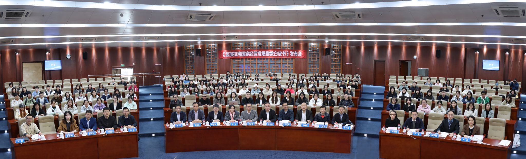 11月19日,由學(xué)校主辦的《孟加拉灣國(guó)家經(jīng)貿(mào)發(fā)展指數(shù)白皮書》發(fā)布會(huì)在柳林校區(qū)成功舉行。學(xué)校黨委常委、副校長(zhǎng)李志生,四川省商務(wù)廳一級(jí)巡視員鄭鵬斌出席發(fā)布會(huì)并致辭。來(lái)自校內(nèi)外相關(guān)職能部門的領(lǐng)導(dǎo)、專家和師生代表齊聚一堂,交流思想、分享觀點(diǎn),共同見證《孟加拉灣國(guó)家經(jīng)貿(mào)發(fā)展指數(shù)白皮書》發(fā)布。