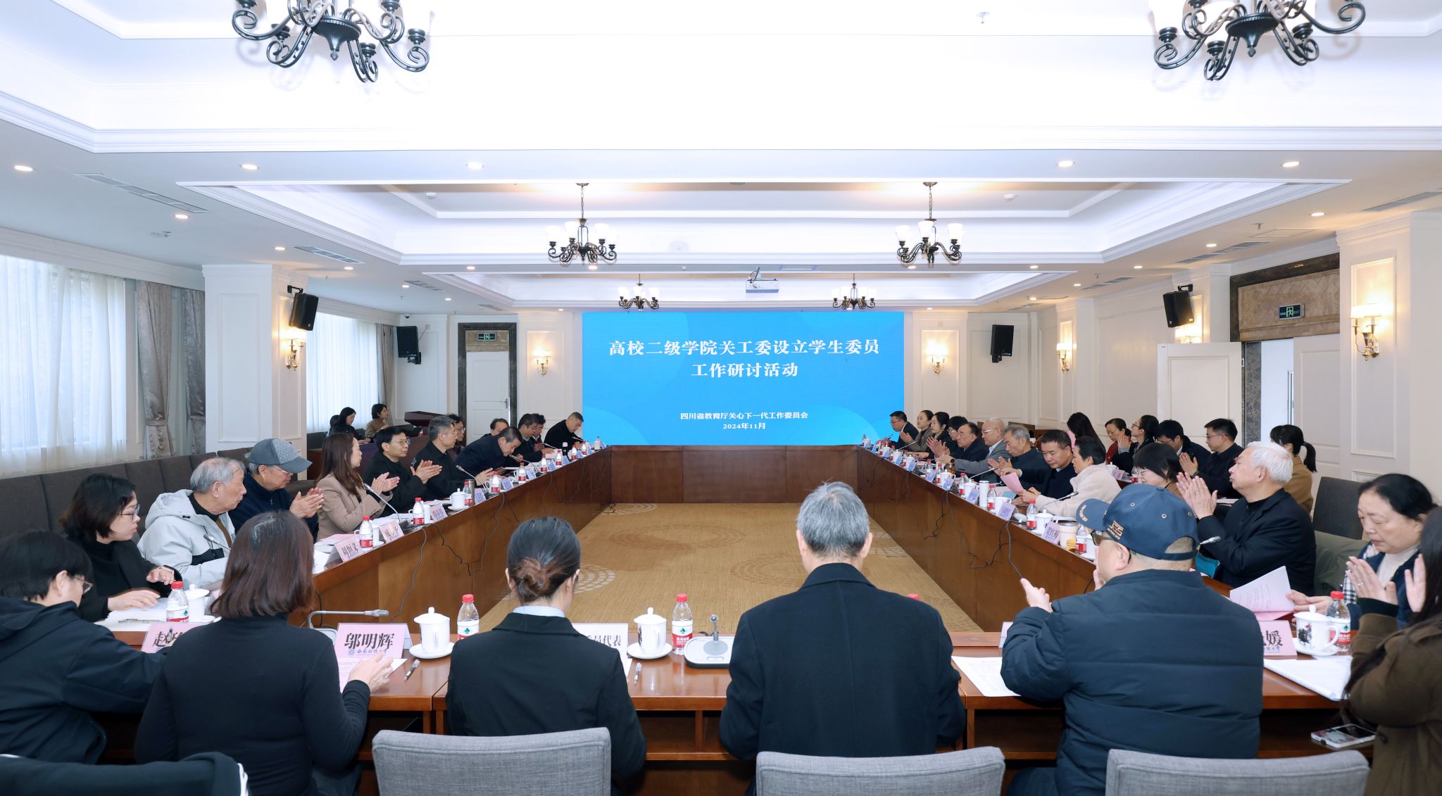 11月29日,四川省高校二級學院關工委設立學生委員研討會在我校舉辦。省關工委副主任、教育廳關工委主任朱世宏,教育廳關工委副主任王嵩建、楊成林,教育廳二級巡視員韓春蓉,學校黨委副書記明海峰,關工委顧問廖明銓,關工委副主任曾道榮,四川大學、電子科技大學、西南交通大學等10所高校關工委負責人,教育廳關工委秘書處、學校關工委秘書處負責人,學生委員代表參會。