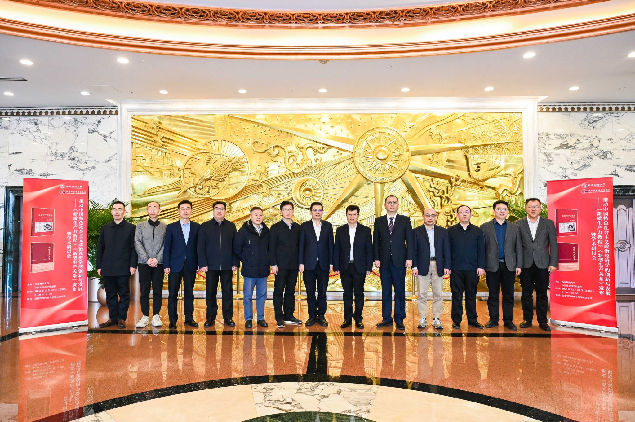 孫殿明致辭時(shí)代表西南財(cái)經(jīng)大學(xué)對(duì)蒞臨會(huì)議的嘉賓表示歡迎和感謝,他指出,習(xí)近平總書記關(guān)于“新質(zhì)生產(chǎn)力”和“新型生產(chǎn)關(guān)系”的重要論述,在理論上發(fā)展了馬克思主義生產(chǎn)力和生產(chǎn)關(guān)系理論,深化了對(duì)生產(chǎn)力與生產(chǎn)關(guān)系相互作用規(guī)律的認(rèn)識(shí),豐富了習(xí)近平經(jīng)濟(jì)思想理論內(nèi)涵;在實(shí)踐上為新發(fā)展階段進(jìn)一步全面深化改革,深入貫徹新發(fā)展理念,加快發(fā)展戰(zhàn)略性新興產(chǎn)業(yè)、培育未來產(chǎn)業(yè)、促進(jìn)傳統(tǒng)產(chǎn)業(yè)轉(zhuǎn)型升級(jí),推動(dòng)經(jīng)濟(jì)高質(zhì)量發(fā)展和構(gòu)筑國(guó)家競(jìng)爭(zhēng)新優(yōu)勢(shì)提供了根本遵循。近年來,西南財(cái)經(jīng)大學(xué)全面貫徹落實(shí)黨的二十大和二十屆二中、三中全會(huì)精神,深入學(xué)習(xí)貫徹全國(guó)教育大會(huì)精神,堅(jiān)持教育、科技、人才一體推進(jìn),緊扣服務(wù)“國(guó)之大者”,展現(xiàn)“西財(cái)有為”。學(xué)校按照教育部“一流學(xué)科培優(yōu)行動(dòng)”部署,以習(xí)近平經(jīng)濟(jì)思想指導(dǎo)建構(gòu)中國(guó)自主的經(jīng)濟(jì)學(xué)知識(shí)體系,不斷探索“組織起來干大事、加強(qiáng)有組織研究”服務(wù)“國(guó)之大者”的有效模式,加快建設(shè)成為中國(guó)特色哲學(xué)社會(huì)科學(xué)領(lǐng)軍人才培養(yǎng)基地、中國(guó)特色哲學(xué)社會(huì)科學(xué)基礎(chǔ)理論創(chuàng)新基地、中國(guó)特色哲學(xué)社會(huì)科學(xué)學(xué)科高地和中國(guó)特色新型財(cái)經(jīng)智庫。《新質(zhì)生產(chǎn)力教程》《新型生產(chǎn)關(guān)系》成功發(fā)布,將為建構(gòu)中國(guó)自主的經(jīng)濟(jì)學(xué)知識(shí)體系貢獻(xiàn)西財(cái)學(xué)者智慧、展現(xiàn)西財(cái)學(xué)者擔(dān)當(dāng)。