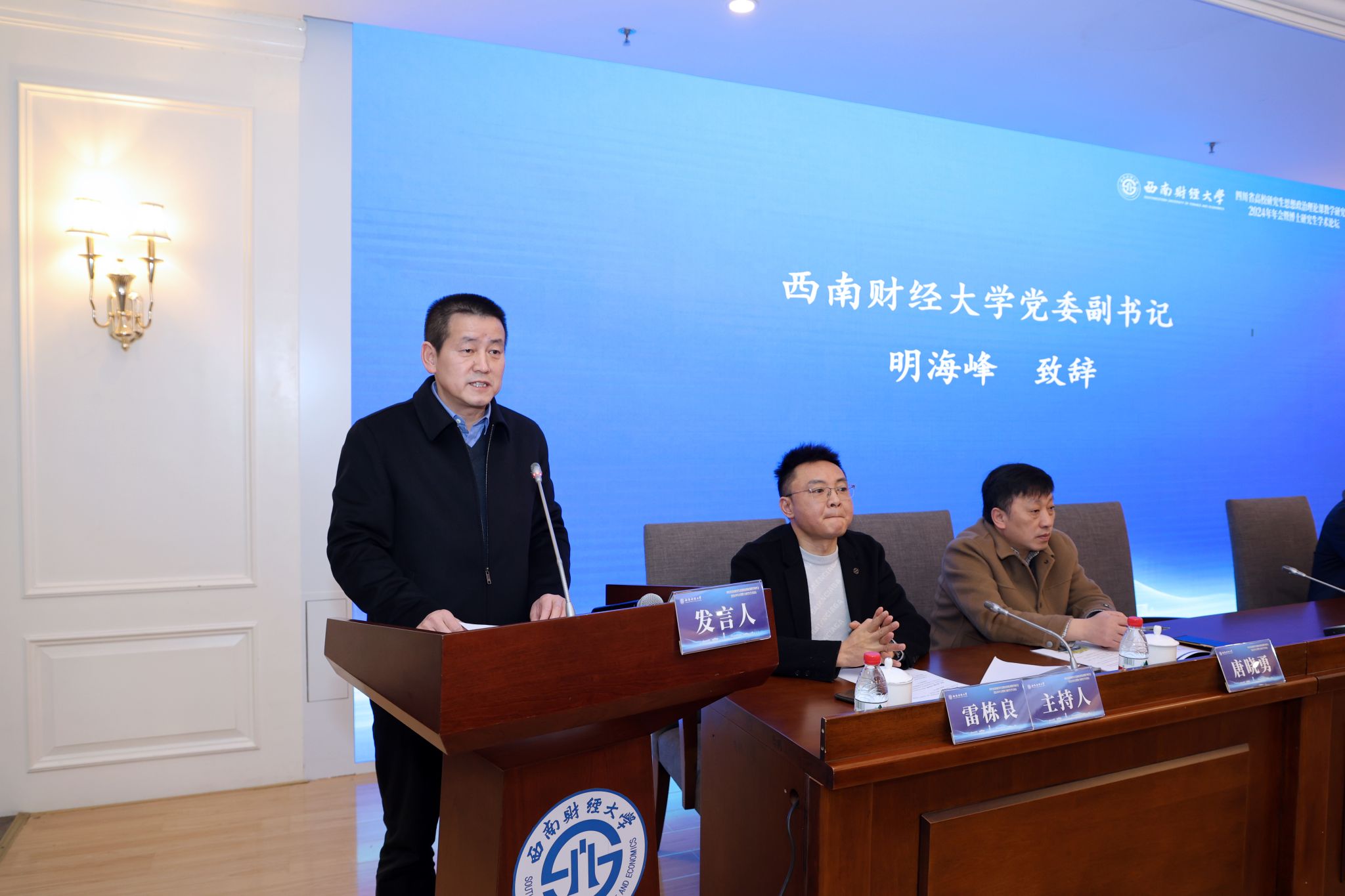 學(xué)校黨委副書記明海峰,四川省教育廳宣傳思想與統(tǒng)戰(zhàn)工作處處長李大鵬,四川省高校研究生思政課教學(xué)研究會會長、四川大學(xué)馬克思主義學(xué)院院長蔣永穆出席開幕式并致辭。學(xué)校馬克思主義學(xué)院黨委書記雷棟良主持開幕式。