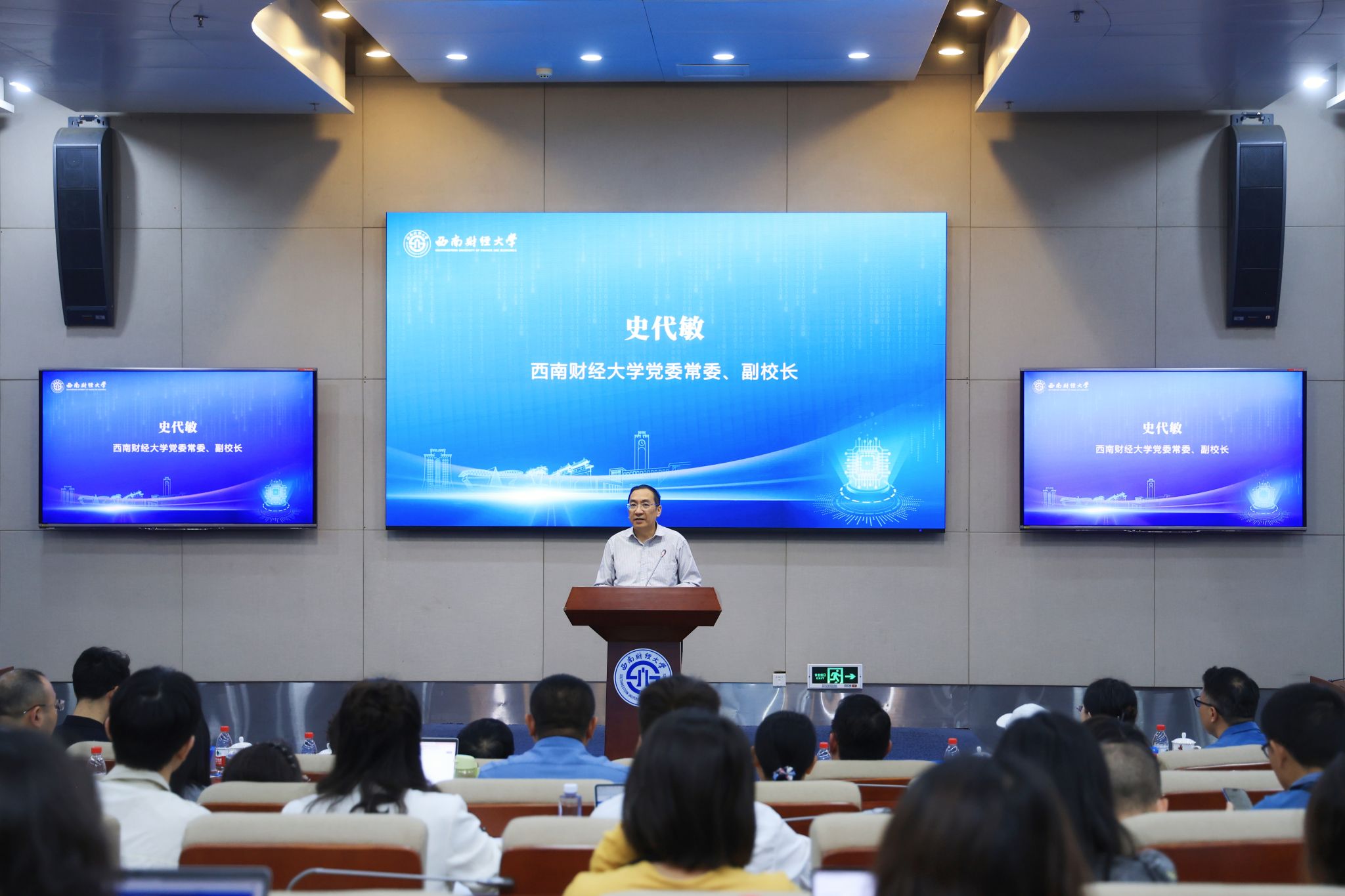 學校黨委常委、副校長史代敏在開幕式致辭。他指出,人工智能引發的教育改革浪潮正撲面而來,此次研討會是對AI賦能教育教學改革的積極回應,要推動本科人才培養從“知識為主”轉向“能力素養為先”,讓課堂教學從“傳統教室”邁向“生動實踐場域”,促使教育改革從“單兵作戰”走向“跨界協同合作”,深化高校教育教學改革。
