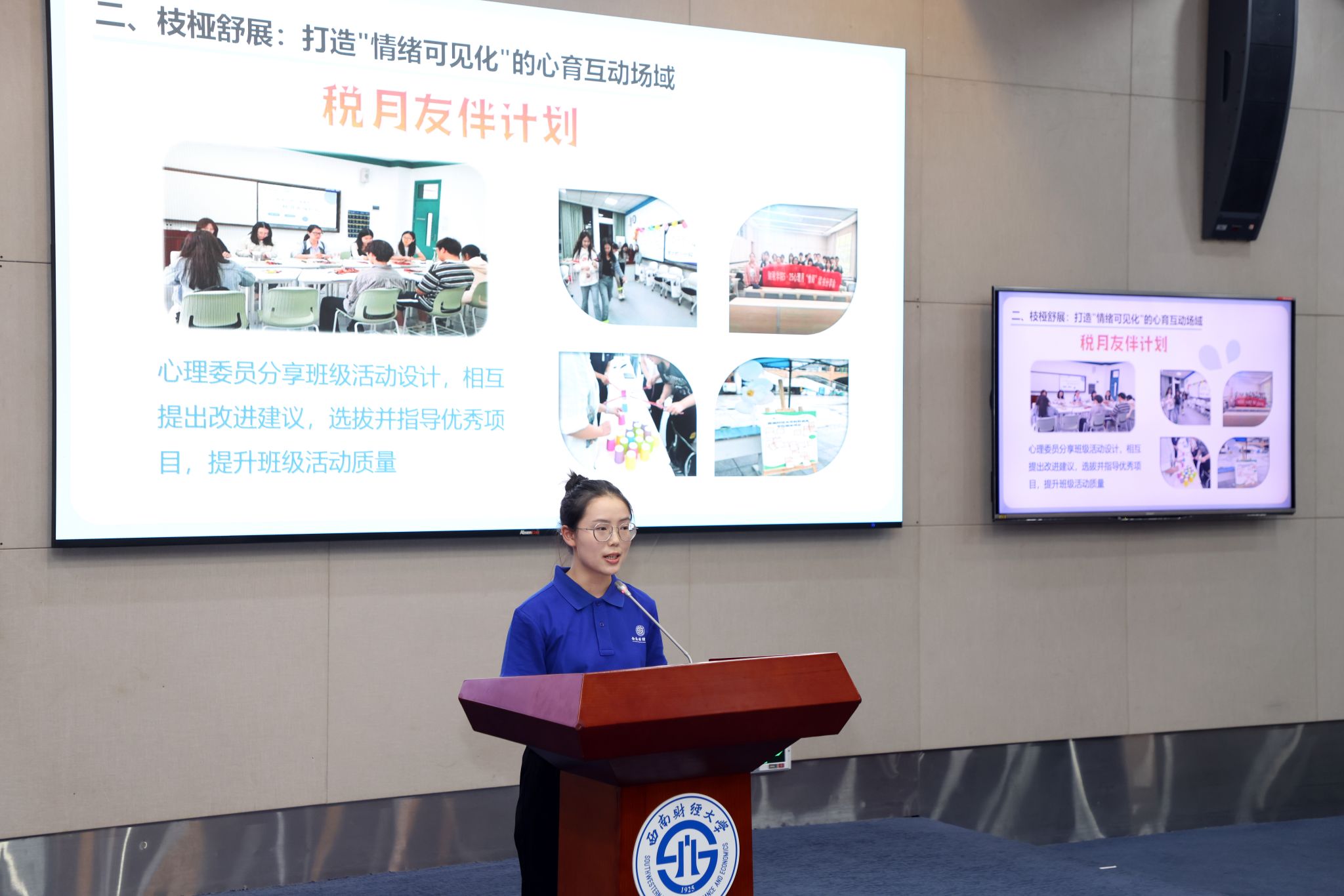 會議集中展示了心理健康教育月活動開展情況,授牌第二批學院(研究院)心理工作示范站,為心理工作先進個人和團隊頒獎。管理科學與工程學院黨委副書記袁程煒、會計學院學生宋炫慧、財政稅務學院學生何春蓮分別作為代表交流發言。