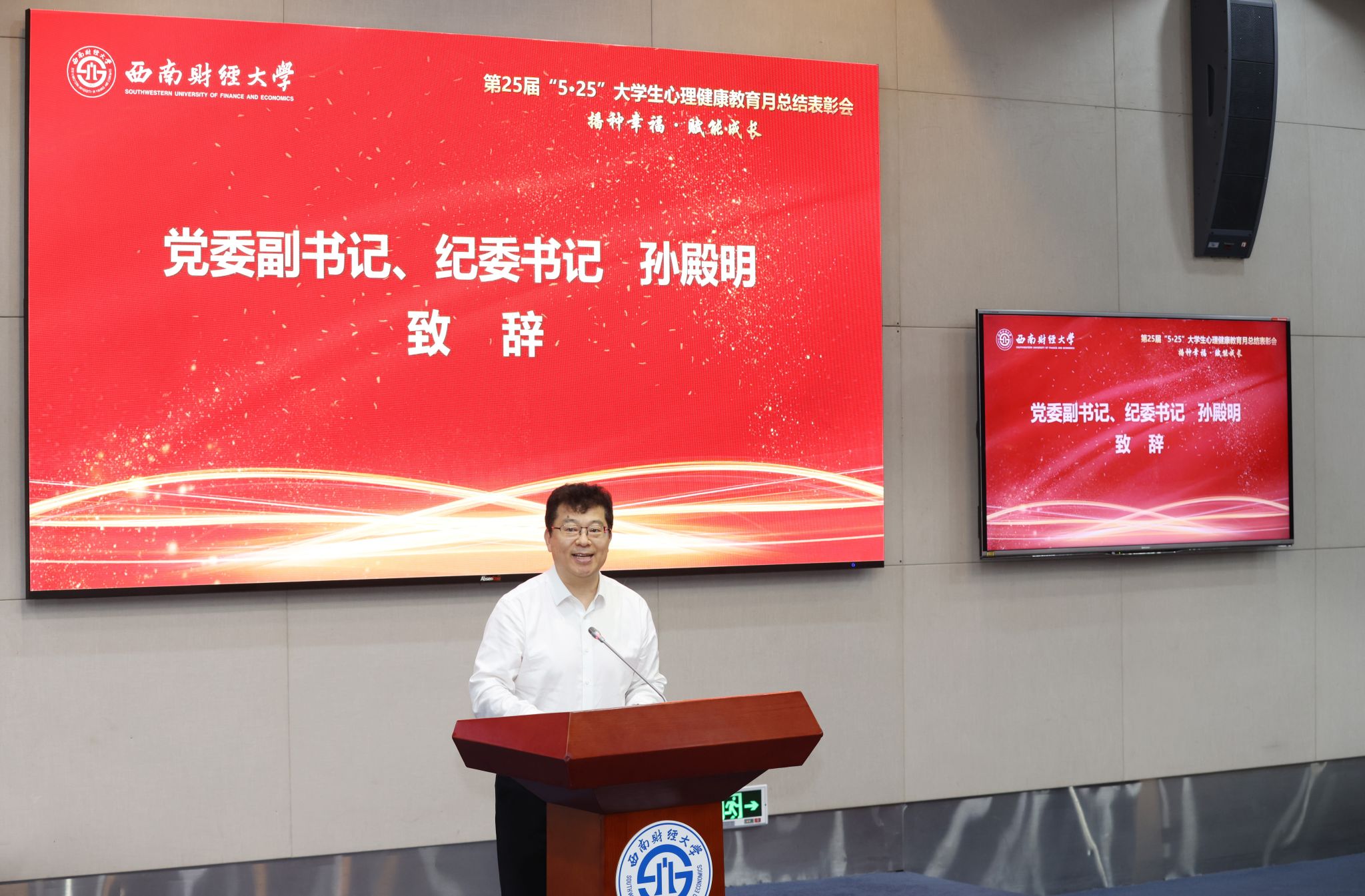 孫殿明代表學校向受到表彰的先進集體和優秀個人表示祝賀。他強調,要站在為黨育人、為國育才戰略高度和強國建設、民族復興全局高度,做好頂層設計,推動“五育并舉”。要深入推進心理健康教育傳統優勢與人工智能深度融合,促進心理育人工作集成化數字化品牌化。要聚焦學校第十四次黨代會精神和“新財經”人才培養方案,凝聚各方力量,做好系統工程,精準施策、協同推進,護航學生心理健康成長。