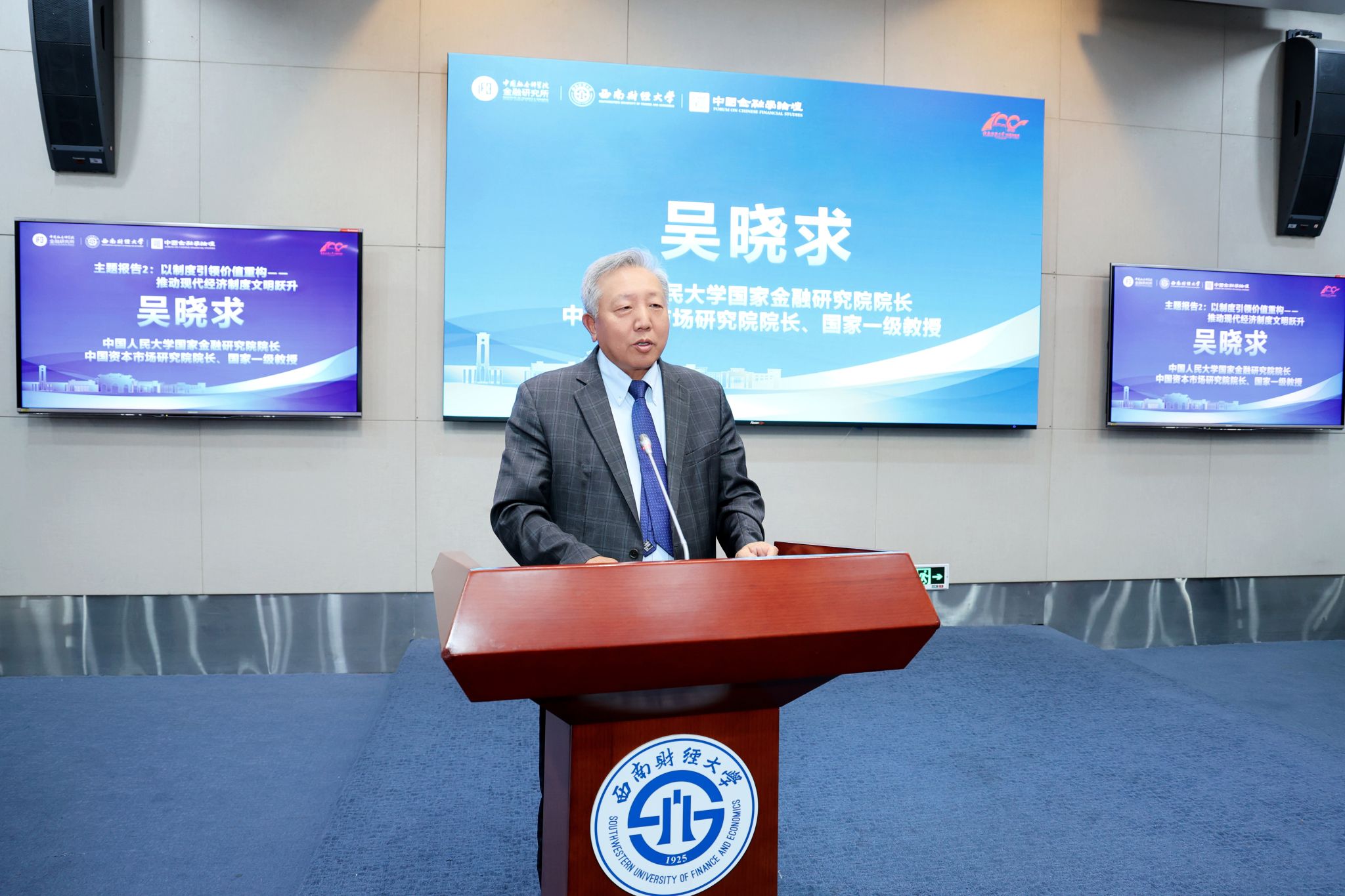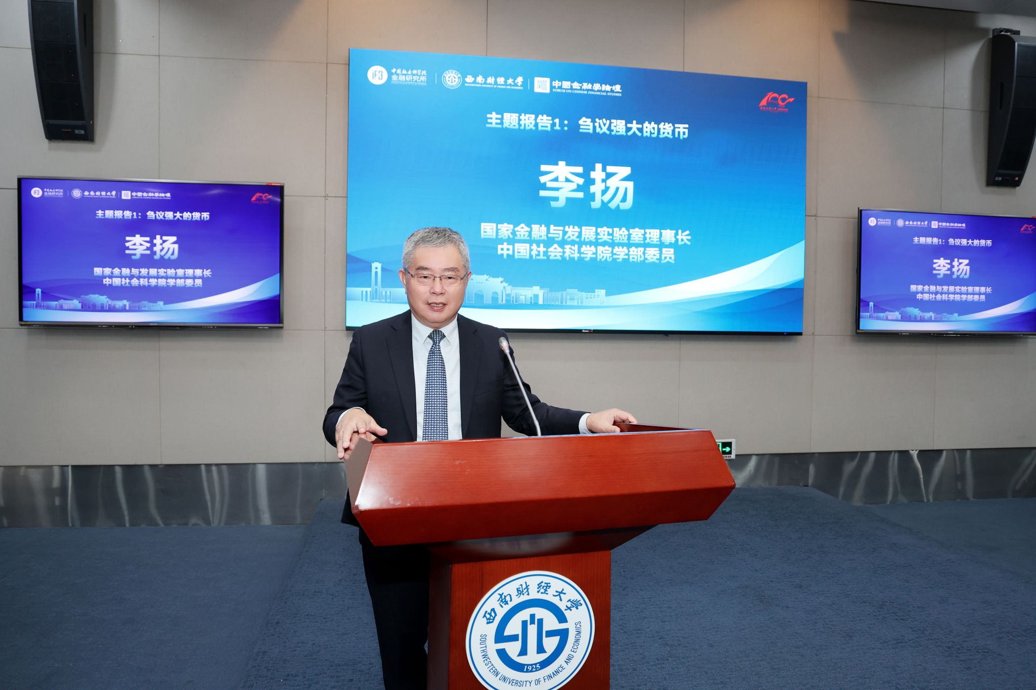 主題研討環節,李建軍、尹志超、田利輝、楊勝剛、易行健五位學者聚焦“十五五時期金融強國建設的戰略部署與實施路徑”,分別以《人工智能與金融人才培養》《共同富裕視角下的中國家庭經濟風險》《十五五時期金融強國建設:融合發展的戰略部署與實施路徑》《金融強國與金融人才職業修養》《中國特色的金融強國建設之路:基于金融史和政策的綜合分析》為題發表演講。