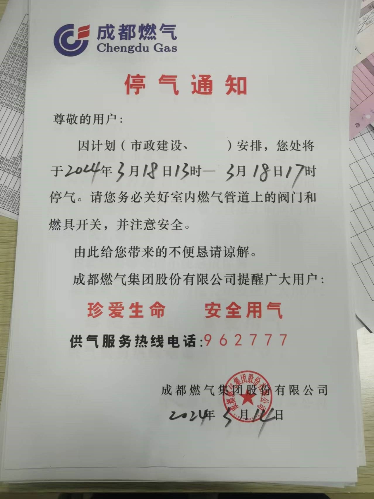 接成都燃?xì)夤就ㄖ蚴姓ㄔO(shè),導(dǎo)致光華校區(qū)臨時(shí)停氣。