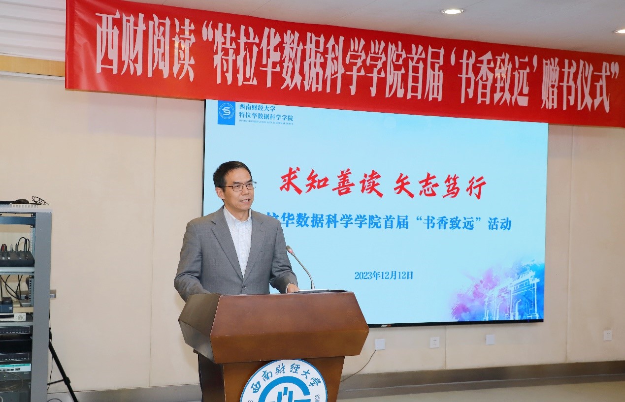 為貫徹落實黨的二十大關(guān)于深化全民閱讀活動的重要部署,落實“時代新人鑄魂工程”,12月12日,特拉華數(shù)據(jù)科學(xué)學(xué)院黨總支舉辦西財閱讀“特拉華數(shù)據(jù)科學(xué)學(xué)院首屆‘書香致遠’”活動贈書儀式。學(xué)校黨委常委、副校長李志生,學(xué)院院長楊石磊、黨總支書記王學(xué)釗、副院長兼黨總支副書記王彬宇、特聘導(dǎo)師謝夢影以及學(xué)院師生代表參加了本次活動。