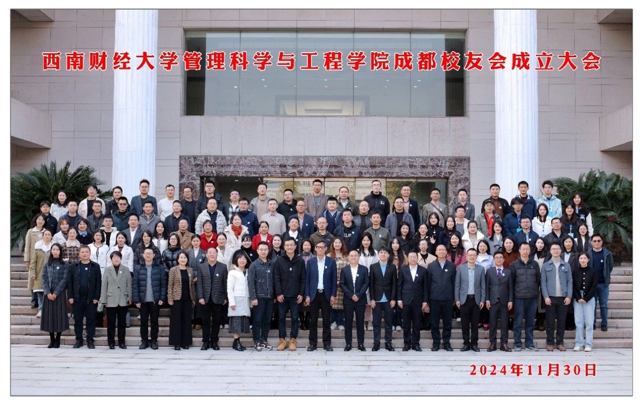 11月30日,西南財經(jīng)大學(xué)管理科學(xué)與工程學(xué)院成都校友會成立大會在光華校區(qū)成功舉辦。學(xué)校黨委常委、副校長桂富強,校友工作辦公室、管理科學(xué)與工程學(xué)院班子成員及教師代表出席會議,川渝地區(qū)校友代表共計80余人參加大會。