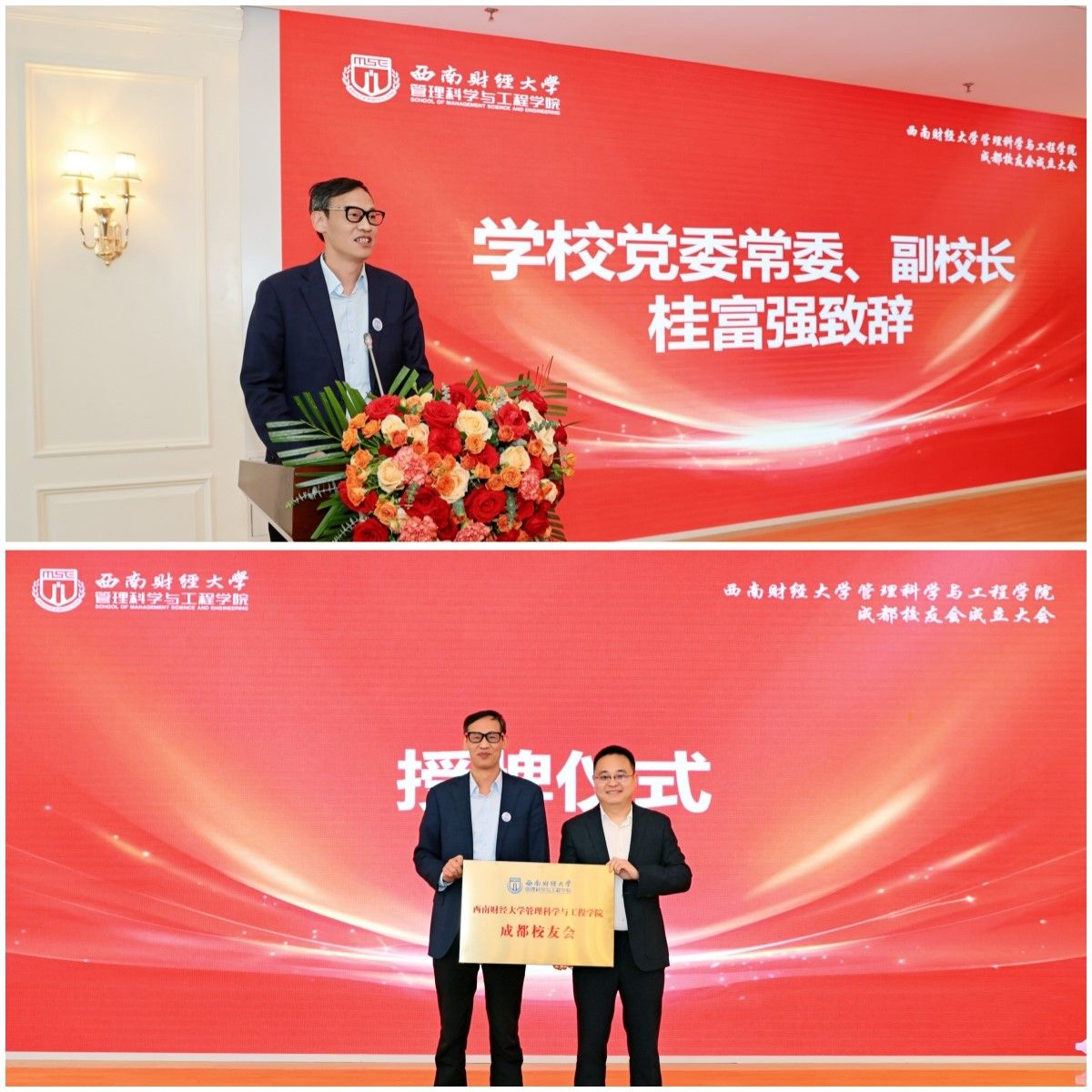 桂富強代表學(xué)校向新成立的管理科學(xué)與工程學(xué)院成都校友會表示衷心祝賀,向與會校友表示熱烈歡迎。他指出,校友是學(xué)校最寶貴的財富,與母校是榮辱與共的命運共同體,希望管理科學(xué)與工程學(xué)院與廣大校友一道,凝心聚力、共謀發(fā)展,為學(xué)校治理和事業(yè)發(fā)展提供智力支持,為加快建設(shè)教育強國貢獻(xiàn)管科力量。
